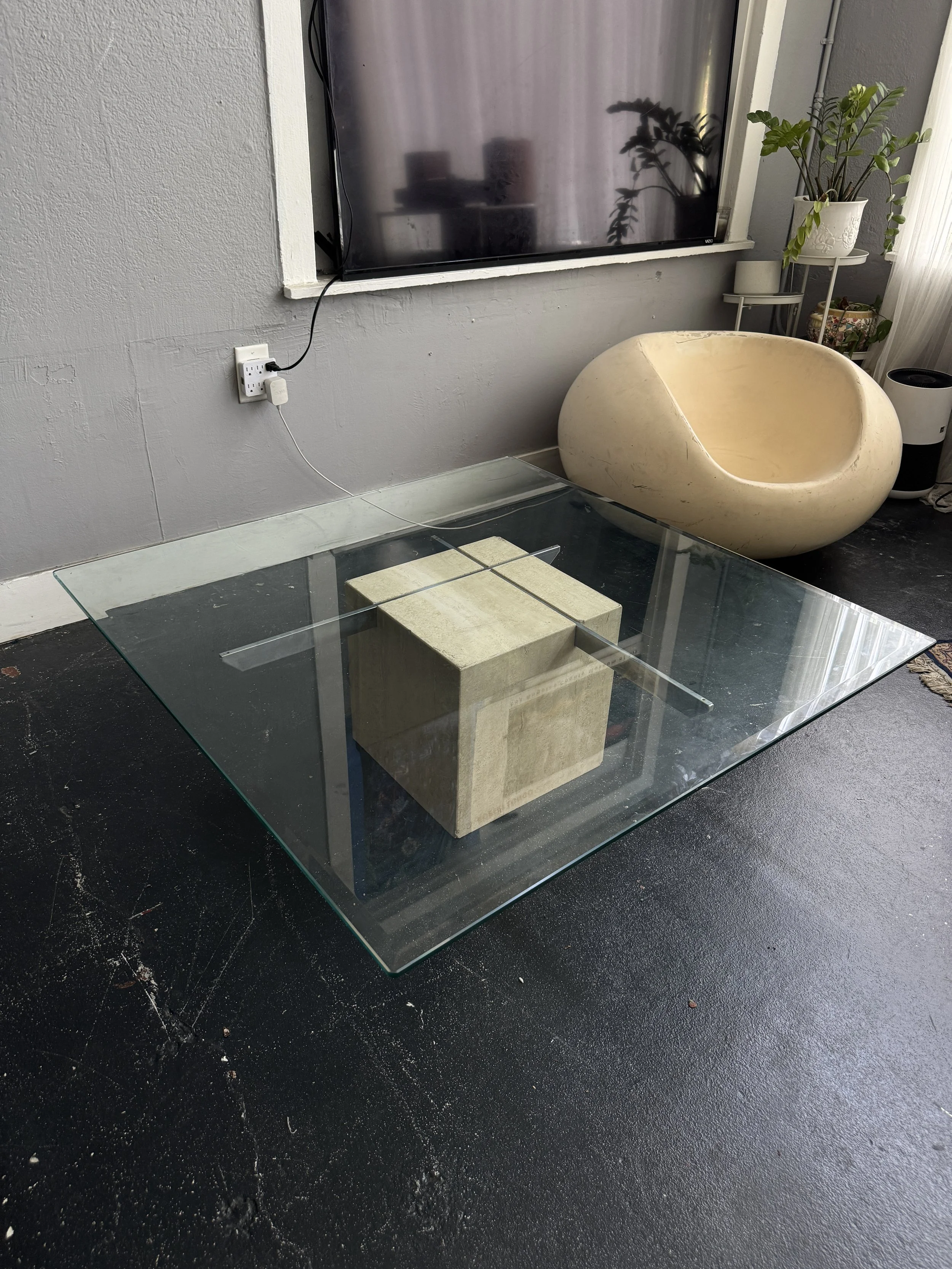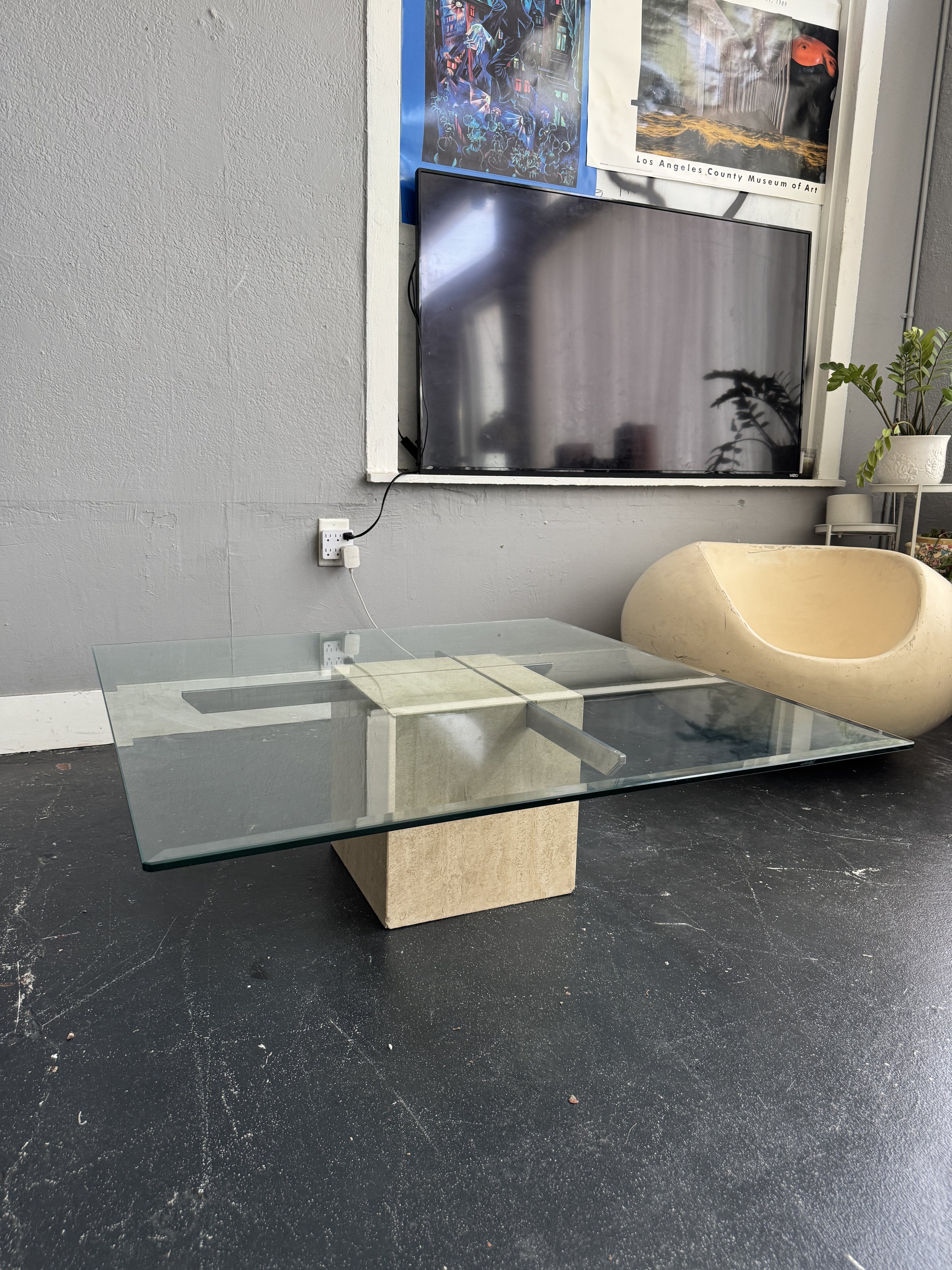 Travertine Italian Post Modern chrome coffee table.